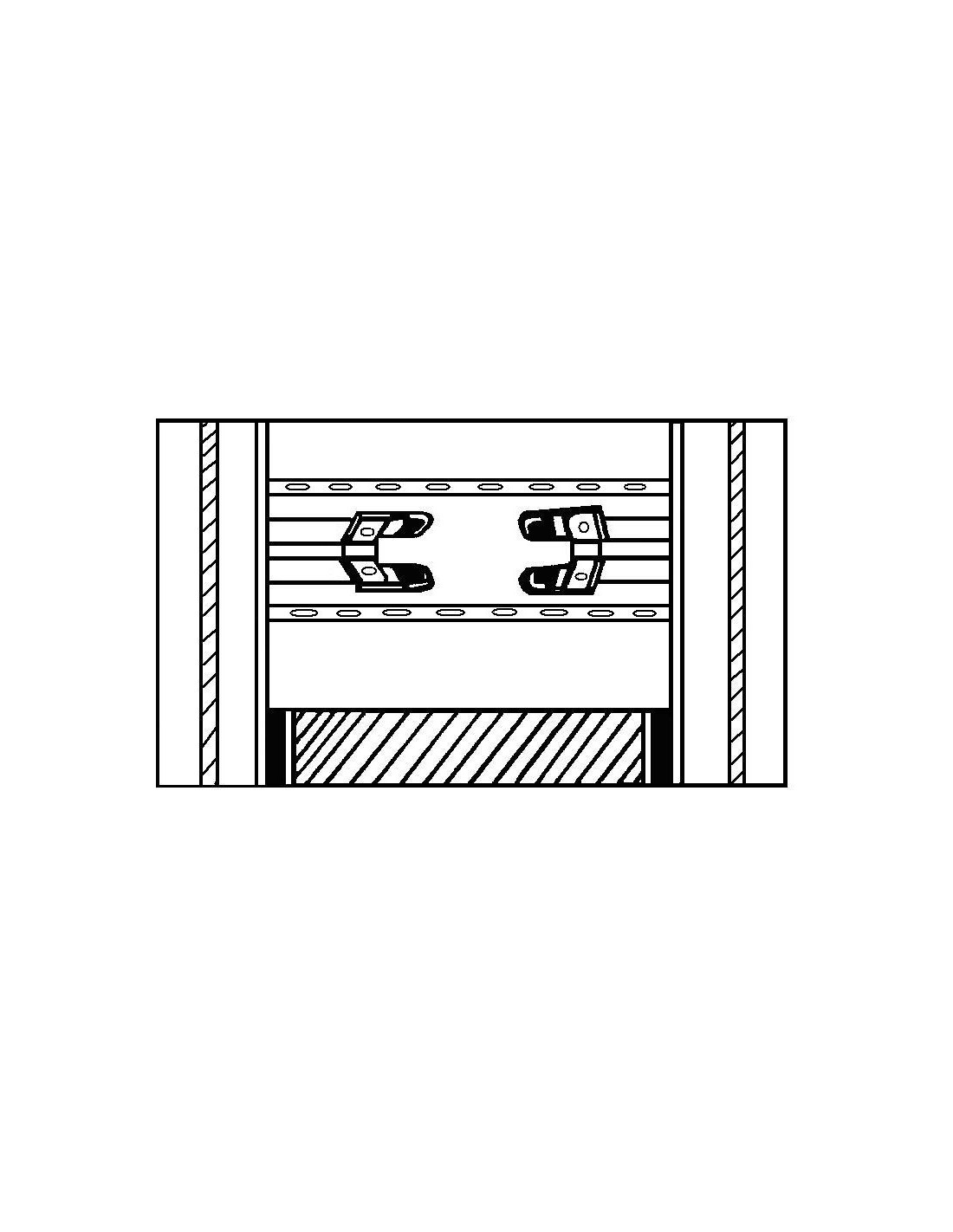 Seguro para persiana tipo pinza formado por aletas de presión y palas dentadas en acero inoxidable.