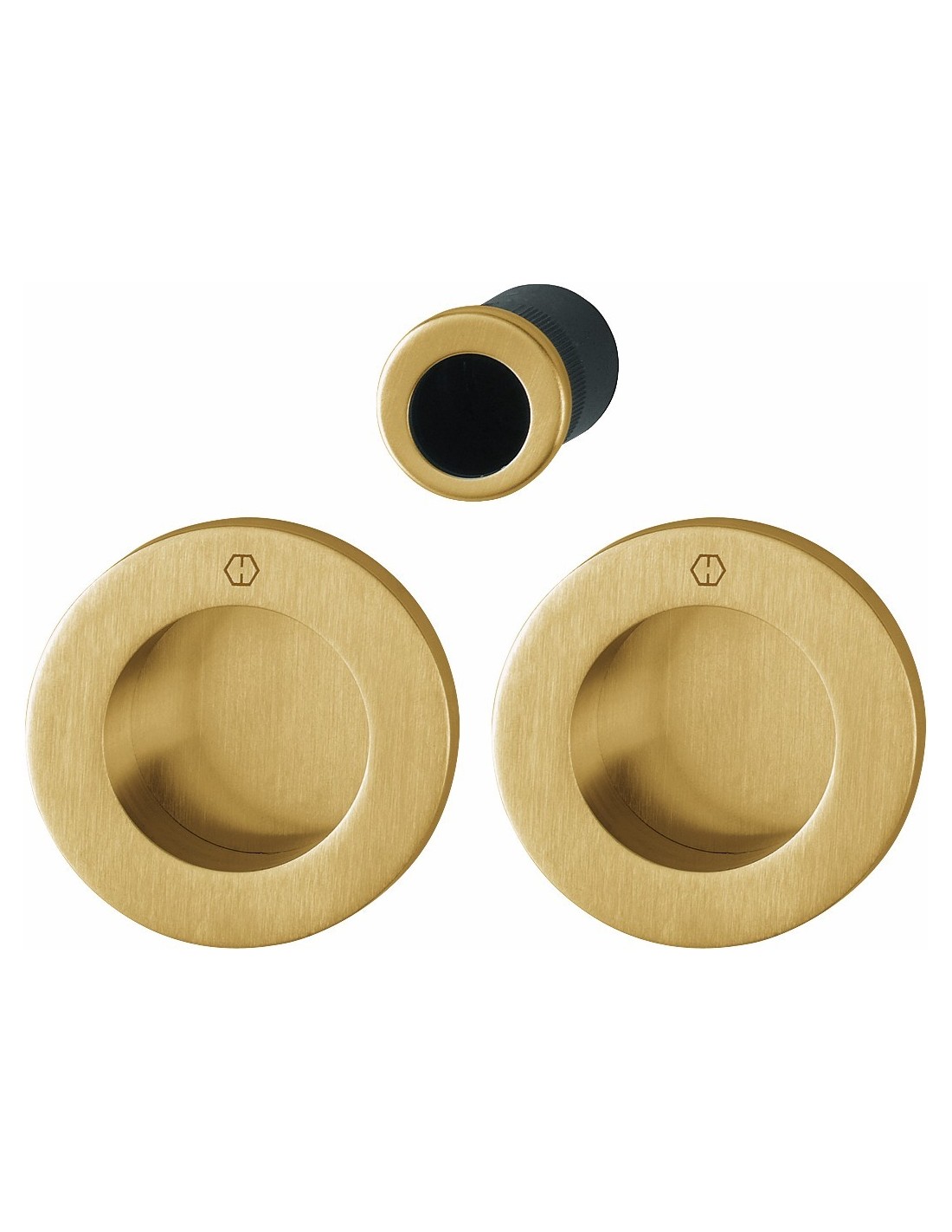 Kit para puerta corredera fabricado en latón, de 68 mm de diámetro con base de nylon de 55 mm entre centros. Fijación no visible, uñero con tornillos multiuso y dedal para fijar con silicona o adhesivo. El acabado Resista confiere al kit una resistencia superior frente a la corrosión siendo el acabado idóneo cuando deben ser instalados en el exterior, en zonas costeras o de alta utilización como edificios públicos, comercios, hoteles...